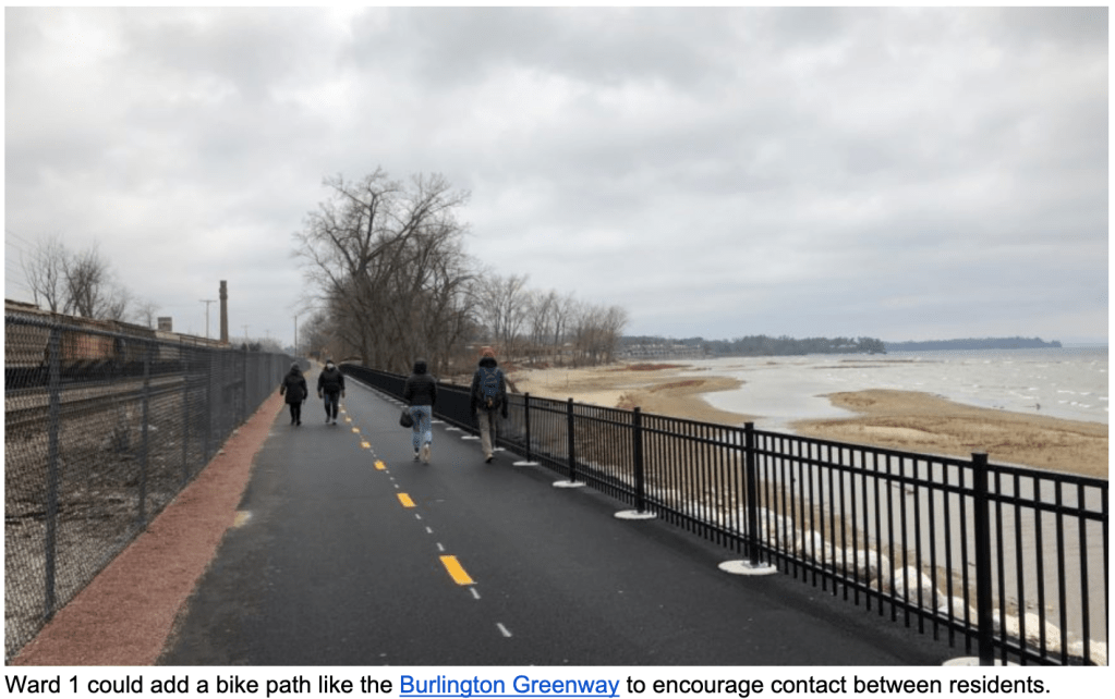 If I could make a contribution to the community of Ralston, I would like to add some sort of contact zone in Ward 1. In “A Structural Look at Ralston”, Ward 1 ranks the lowest for both Ward Vitality and Ward Neighborliness. This is likely because of the stark divide between the upper and lower classes in this ward – they are literally separated by a road, with the only sort of social place in the entire ward being the golf course and country club – something that’s only accessible to the wealthier households. I think the easiest way to do this would be by utilizing these existing places. The country club and golf course could put aside certain days of the week or month to be “community days”, where they’re open for everyone in Ralston, not just existing members. Not only would this allow other groups of people to enjoy the amenities offered at these places, but it would give an opportunity for community members from all over Ralston (not just Ward 1) to get together and socialize.Another option that would require more money and resources would be to build a park or a bike path, like the Ralston P3 or Burlington Greenway, in Ward 1. A bike path would probably be more effective, as it would appeal to both the upper and lower classes in the ward – since the upper class already has access to the country club and golf course they likely wouldn’t utilize a park as much and it wouldn’t act as a very good contact zone. On the other hand, a bike path would encourage residents to get out and explore the rest of their ward more. Since it’s something that would be appealing and accessible to both economic classes in Ward 1, it would be an effective contact zone.