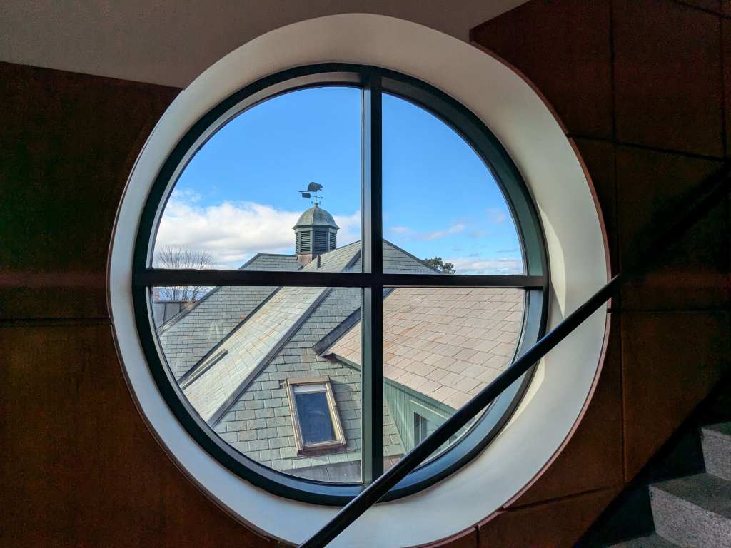 The map on the wall in the staircase mirrors the windows on the half floors above. Like the windows, the map shows us the world we live in. It is, in its own way, a window.