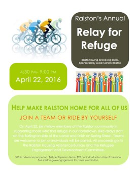I created a bike race poster for Ralston that focused on community values like inclusivity, support, and engagement. Because of Ralston’s diversity (and the necessary efforts of the community to include such a varying population), I thought it would be likely that the community members would plan to engage the entire population of Ralston in a family-friendly and proactive even that bettered everyone. It seems reasonable to me that a very green community who is proud of its ability to give back and include the many different people around them would use something like a bike relay race to support new community members.